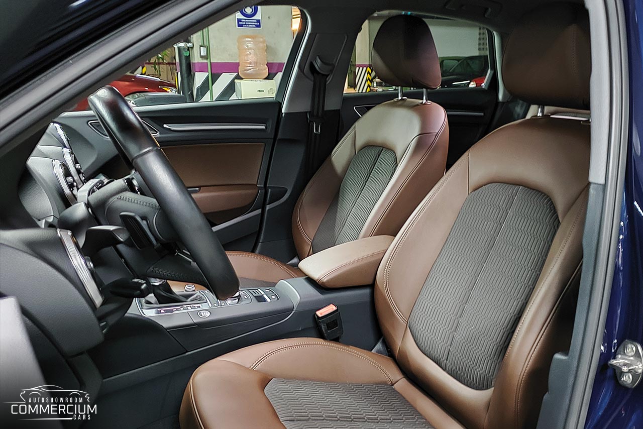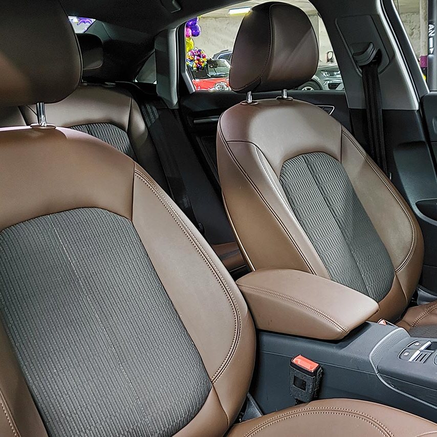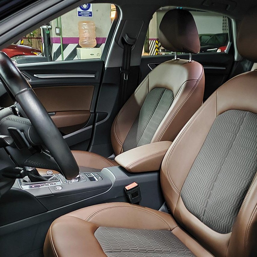 - Asientos de tela y piel.